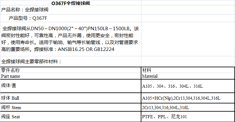 一體式全焊接球閥,不會有外部泄漏等現(xiàn)象,由于閥座是由碳化特氟隆密封環(huán)及咖彈簧構(gòu)成的,以對壓力和溫度的變化適應(yīng)能力強,標注壓力和溫度范圍內(nèi)不會產(chǎn)生任何泄滑。球體的加工過程有先進的計算機檢測儀跟蹤檢測,以球體的加工精度高。由于閥體材料跟管道材質(zhì)一樣,會出現(xiàn)應(yīng)力不均,不會由于地震及車輛經(jīng)過地面時而產(chǎn)生變形,管道耐老化。密封環(huán)本體采用含量20%C(碳素)的PTFE材質(zhì),保障完全無泄漏(0%)。