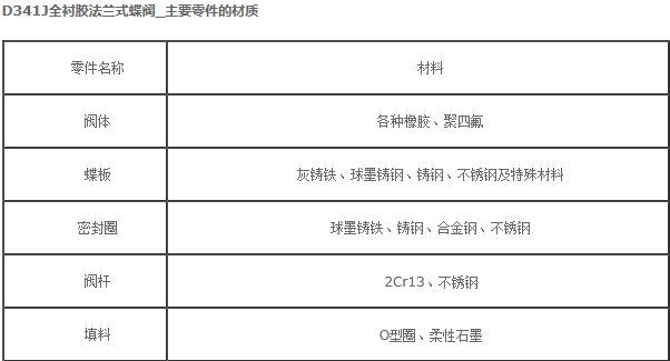 D341J全襯膠法蘭式蝶閥 法蘭式蝶閥_用途及特點(diǎn)     軟密封蝶閥適用于溫度≤120℃,公稱壓力≤1.6MPa的食品、醫(yī)藥、化工、石油、電力、輕紡造紙等給排水、氣體管道上作調(diào)節(jié)流量和截滶介質(zhì)的作用。 D341J全襯膠法蘭式蝶閥_主要特點(diǎn): 1、設(shè)計(jì)新穎、合理、結(jié)構(gòu)獨(dú)特,重量輕,啟閉迅速。 2、操力矩小,操作方便,省力靈巧。 3、可以任何位置安裝、維修方便。 4、密封件可以更換、密封性能可靠達(dá)到雙向密封零泄漏。 5、密封材料耐老化、耐腐蝕、使用壽命長等特點(diǎn)。 D341J采用標(biāo)準(zhǔn) 設(shè)計(jì)標(biāo)準(zhǔn):GB/T12238-1989 法蘭連接尺寸:GB/T9113.1-2000 GB/T9115.1-2000 JB78 結(jié)構(gòu)長度:GB/T12221-1989 壓力試驗(yàn):GB/T13927-1992;JB/T9092-1999