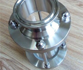 快裝管道視鏡概述:快裝視鏡(內(nèi)外拋鏡面、亞光、普通光、租拋等)產(chǎn)品內(nèi)外用高檔拋光設(shè)備處理,達到表面精密度要求;此產(chǎn)品適用于乳品、食品、啤酒、飲料、制藥等工業(yè)領(lǐng)域的不銹鋼管路系統(tǒng)玻璃管視鏡,是衛(wèi)生管道裝置上主要附件之一,它的最大特點是擁有360°的觀察面,在醫(yī)藥、食品等衛(wèi)生生產(chǎn)裝置的管道中,可以從各個方位隨時觀察到管道中液體、氣體、蒸汽等介質(zhì)流動及反應(yīng)情況,起到監(jiān)視生產(chǎn)、避免生產(chǎn)過程中事故發(fā)生的作用。耐壓較底,一般適用于低壓管道,公稱壓力6公斤/厘米的玻璃管視鏡中玻璃管無正式產(chǎn)品,如選用須進行試制。